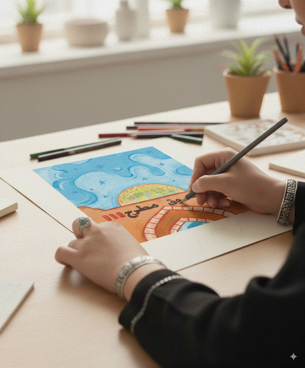A celebration of the talented creators we proudly collaborate with; painters, illustrators, photographers, and artisans whose work reflects the beauty and diversity of Oman’s creativity. These are just a few of the incredible artists and artisans who help bring Mezrad’s vision to life. Behind the scenes, many more from our community contribute their passion and craft, making Mezrad a true home for shared stories and creativity.